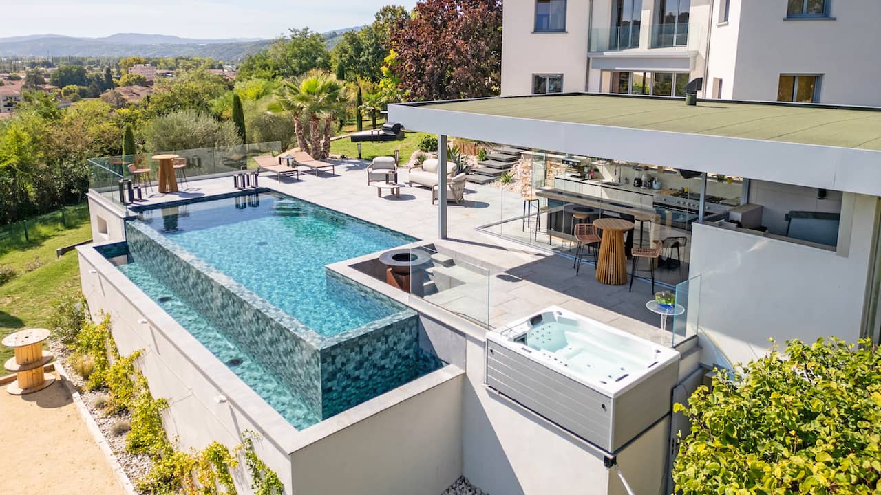 À cela, s’ajoute notre réseau de fournisseurs, ainsi que nos confères piscinistes de l’esprit piscine, pour nous aider à continuer à progresser dans nos pratiques. Nous sommes ainsi capables de réaliser tous les types de piscines : piscines à débordement, couloirs de nage, piscines à terrasse mobile, piscines intérieures… Et notamment celles qui intègrent les dernières innovations techniques, que ce soit en terme de gestion de la filtration, du recours à la domotique, etc.
