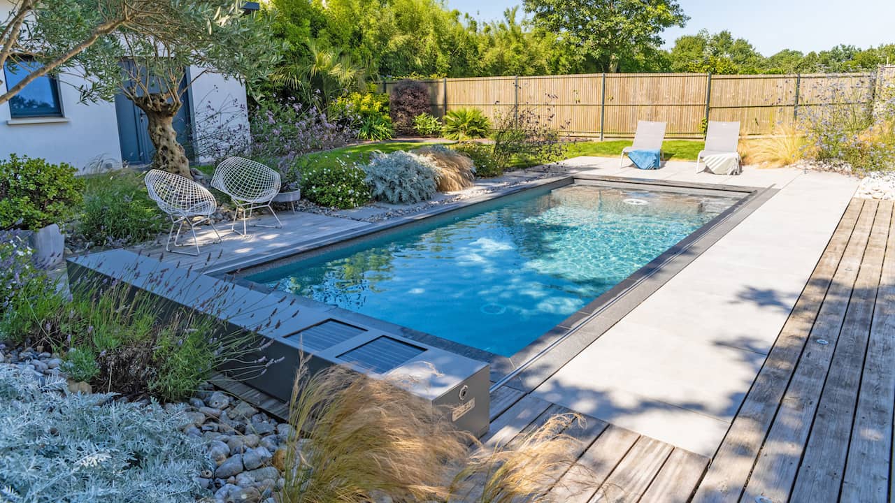 - Notre capacité à réaliser les aménagements périphériques de la piscine, en dehors des végétaux, et donc à faire des piscines parfaitement intégrées à leur environnement.