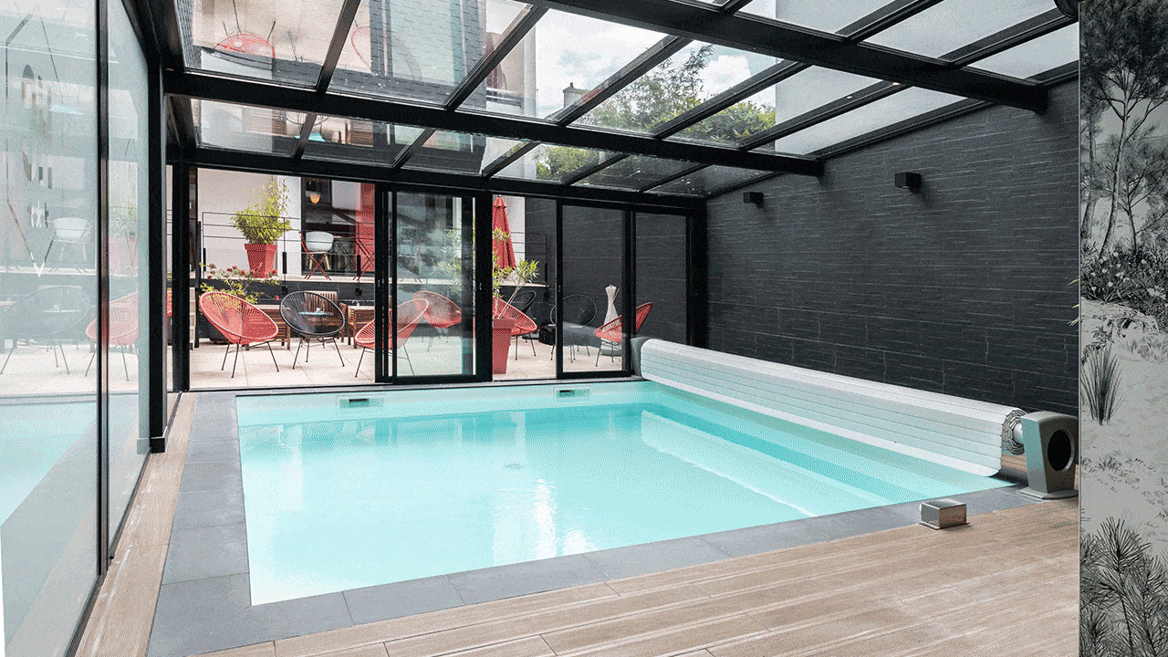 Conçu à l’origine pour la rénovation des piscines existantes, le volet hors sol s’installe à l’extérieur du bassin, sans besoin de coffre ni d’extension. Pour une intégration harmonieuse, il est possible de le recouvrir d’un banc combinant bois et inox.